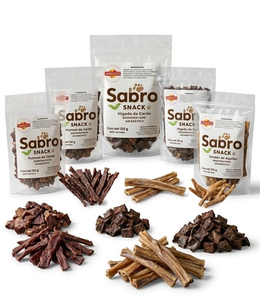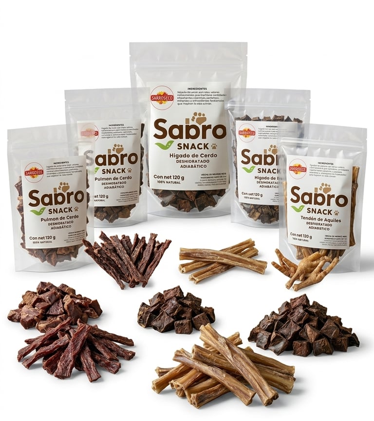 SabroSnack es una línea premium de snacks naturales deshidratados para mascotas desarrollada por Sabroseco